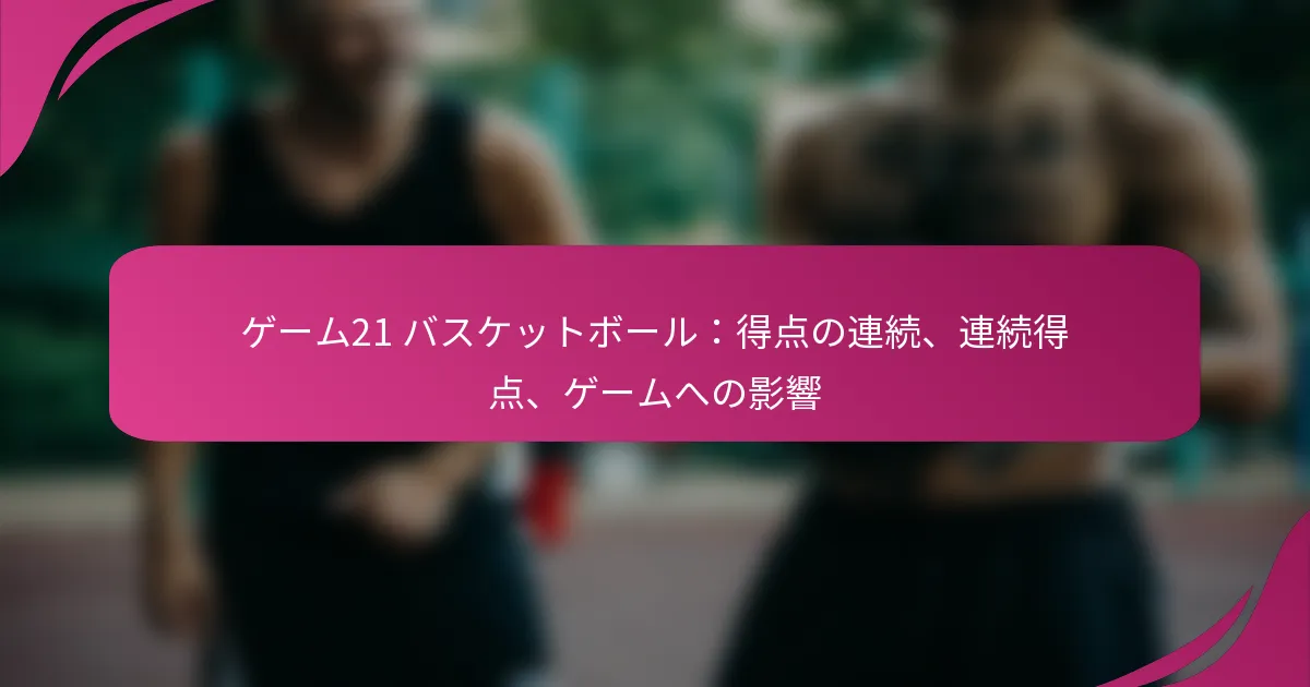 ゲーム21バスケットボールにおける得点連続とは、試合中にプレイヤーまたはチームが連続して得点したポイントの系列を指します。これらの連続得点は、試合の結果に大きな影響を与え、プレイヤーのパフォーマンスやコート上での勢いを反映します。
