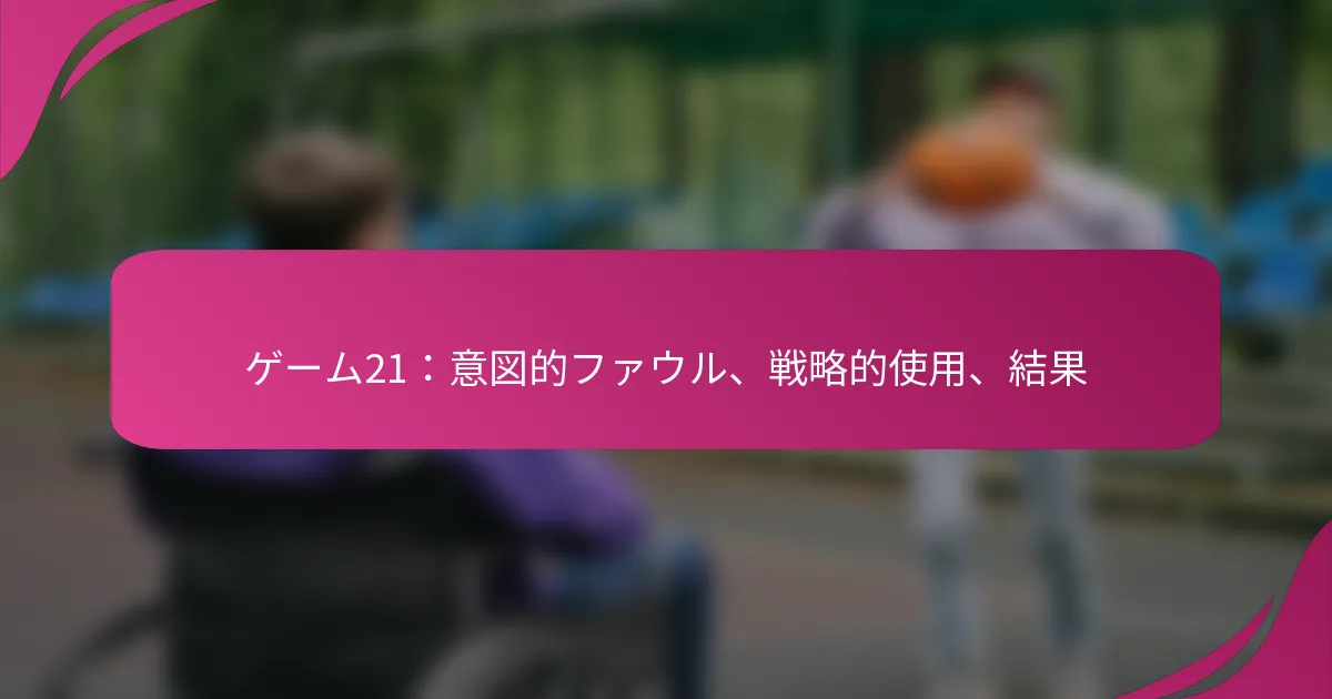 ゲーム21における意図的ファウルは、試合の流れを妨害するために選手が故意に行う行動であり、しばしば戦略的なアドバンテージを得るために使用されます。これらのファウルは、時計を止めたり、相手チームを不利な状況に追い込んだりすることで、結果に大きな影響を与えることがあります。